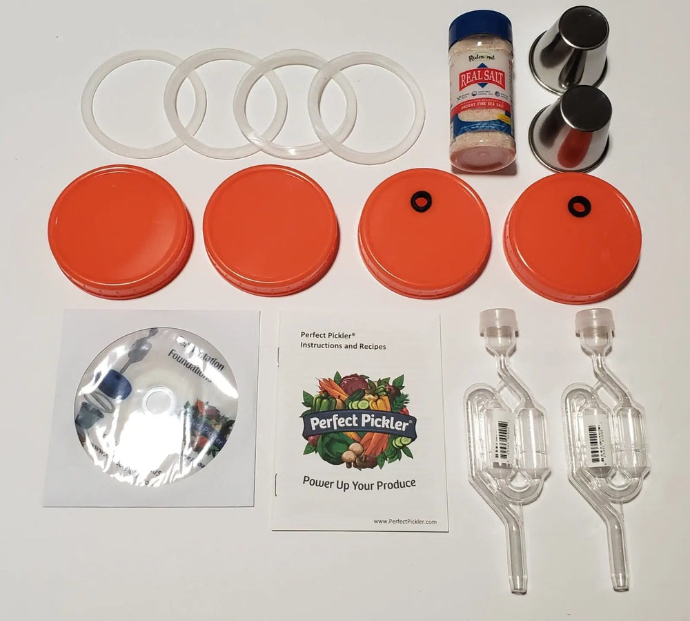 This Kit provides 2 Perfect Pickler® Vegetable Fermenting Kit Systems for do-it-yourself vegetable fermenting. The perfect solution for those who want to ferment more than one jar (or two different recipes) at a time. This is by far our most popular kit, as it contains two Fermentation Master Systems as well as a DVD instructional video.